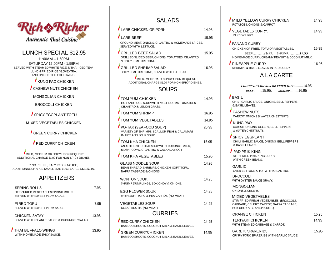 Rich & Richer Authentic Thai Cuisine Menu